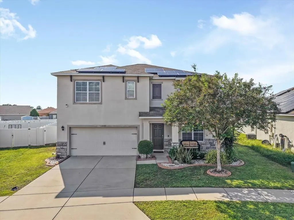 Relocating to Central Florida has never been easier than with 3105 Royal Tern Drive in Winter Haven, a move-in-ready home designed for comfort, efficiency, and peace of mind. From the moment you arrive, the charming covered front porch with stacked stone accents and decorative concrete curbing around the mature landscaping creates a warm and welcoming first impression. Inside, a split floorplan provides privacy for everyone. The front room offers the perfect office and an upstairs loft delivers flexible bonus space for guests, hobbies, or a media retreat. The interior has been refreshed with granite countertops, updated flooring, stylish light fixtures, upgraded kitchen hardware, fresh paint, and abundant storage closets. Outdoor living is at its best with a west-facing screened lanai featuring tile floors and ceiling fans, overlooking an oversized private backyard enclosed by PVC fencing. It is the perfect setting to entertain, play, or simply unwind while enjoying Florida’s famous colorful sunsets. Premium systems make this home worry-free, including whole-home solar panels that keep electric bills between $40 and $60 in the summer and with occasional rebates in the cooler months, a regularly serviced Generac standby generator powered by an underground propane tank capable of running the home for up to 14 days, and a complete water treatment package with whole-house filter, softener, and reverse osmosis. With an HOA of just $160 per year, residents enjoy quiet community living close to Winter Haven’s Chain of Lakes, golf courses, shopping, dining, and family attractions like Legoland, along with easy access to Orlando, Tampa, and Florida’s Gulf Coast beaches. Blending modern upgrades, financial efficiency, and true Florida charm, this property offers a turnkey opportunity for buyers seeking a seamless relocation—schedule your private showing today and discover the lifestyle waiting for you at 3105 Royal Tern Drive.