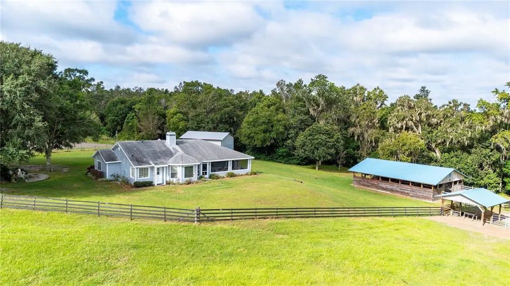 Welcome to your own slice of paradise nestled in the picturesque hills of Dade City. This stunning 15-acre equestrian property offers the perfect blend of peaceful seclusion and convenient accessibility. Minutes from I-75, this retreat feels worlds away while being only 10 minutes from downtown Dade City and 45 minutes to Tampa International Airport. This elevated property is high and dry with no flood risk, and it's surrounded by other large estate properties and wonderful neighbors. The home is a cozy 4-bedroom, 3.5-bath home featuring over 2100+ sq ft of well-appointed living space. Natural light pours in through windows on every side, framing park-like views from every room. Equestrian enthusiasts will love the 4-stall barn complete with a tack room, feed room, wash rack and a covered area for parking your mower and tractor. The enormous lush pasture is cross fenced and ready for your horses to enjoy. A 1600+ sq ft detached garage adds additional storage or workspace flexibility. Whether you're relaxing on your porch, stargazing in the peaceful evenings, or taking your horses out for a ride, this property offers a lifestyle that’s becoming increasingly rare.
