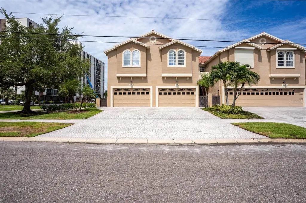 Discover a rare opportunity to own a luxurious waterfront townhome in Clearwater’s highly desirable Island Estates community. Located on a raised lot... this townhome DID NOT get any water from the past hurricanes! This beautifully designed residence features a private travertine-paved courtyard with a screened plunge pool, LED lighting, and wraparound bench seating—perfect for serene relaxation or entertaining. Inside, the spacious open layout boasts soaring ceilings, rich espresso hardwood floors, crown molding, architectural columns, and a chef-inspired kitchen with custom cabinetry, granite countertops, stainless steel appliances, and a glass tile backsplash. The living area includes a cozy wood-burning fireplace and large sliding doors that connect seamlessly to the courtyard. Upstairs, the primary suite is a true retreat with two walk-in closets, hardwood floors, a fireplace, and a private balcony offering water views and sunsets, along with a spa-style bath featuring a soaking tub, walk-in shower, and granite vanity. Two additional bedrooms share a Jack-and-Jill bathroom, and the laundry area is conveniently located on the same floor. An oversized two-car garage provides generous space for vehicles and gear. With an incredibly low HOA fee of just $133.33/month covering lawn service, groundskeeping, and exterior care, this home is a rare find on the island. This townhome is very aggressively priced, offering exceptional value in a premier waterfront location just minutes from Clearwater Beach, shopping, dining, and more. Don’t miss your chance to make this exceptional townhome your own.