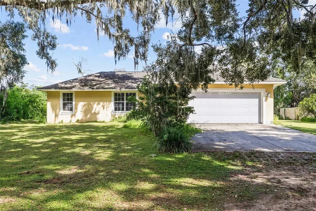 Under contract-accepting backup offers. Welcome to 3-bedroom, 2-bathroom home sitting on a spacious 0.5-acre lot. Offering 1,438 square feet of comfortable living space and an open floor plan. The kitchen includes solid wood cabinets and a breakfast bar, perfect for casual dining, while French doors lead to a peaceful backyard with wooded views. The master suite is tucked away for maximum tranquility, offering a walk-in closet, attached bathroom, and private French doors to the backyard. On the opposite side of the home, you'll find two additional bedrooms and a full guest bathroom—perfect for family or visitors. This property combines country charm with modern convenience—just minutes from major highways.