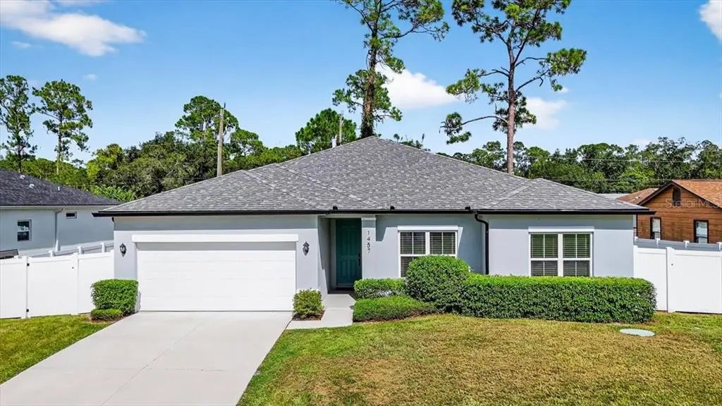 Built in 2023, this stunning 4 bedroom, 3 bathroom home combines contemporary design with everyday comfort, all just minutes from the beach, shopping, dining, and entertainment. Step inside to find an open floor plan with soaring ceilings, abundant natural light, and stylish finishes throughout. The gourmet kitchen features granite countertops, stainless steel appliances, and a large island—perfect for entertaining or family gatherings. The spacious primary suite offers dual walk-in closets and a spa-like bath with two vanities, and walk-in shower. With three additional bedrooms and two more full baths, this home provides plenty of space for guests, family, or even a home office. Enjoy Florida living year-round with a covered patio and private backyard, ideal for outdoor dining, barbecues, or simply relaxing in the sunshine. Don't miss the opportunity to own a brand-new home in a prime coastal location!