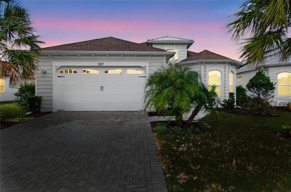 Welcome to paradise in Latitude Margaritaville! This upgraded Breeze model sits atop an oversized premium waterfront lot, offering refined comfort and relaxed living with over $35k in upgrades. The spacious kitchen is the heart of the home, featuring upgraded energy-saving stainless steel appliances, a gas range, under-cabinet lighting, and an enormous island accented with unique shiplap detailing — perfect for cooking and entertaining. Attention to detail abounds, including plantation shutters, recessed lighting and blown-in attic insulation for enhanced energy efficiency. There is also a paver driveway and an upgraded lanai with custom roll-down shades. Enjoy resort-style amenities, including a private beach club with transportation, sparkling pool and recreation, and an on-site restaurant.