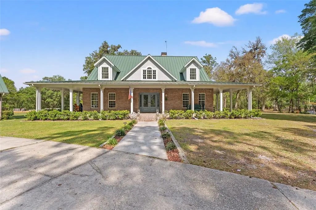 Welcome to 105 acres of pure Florida paradise—where rolling hills, open pastures, flowering fields, and towering grandfather oaks create a breathtaking backdrop for a truly exceptional ranch lifestyle. This versatile property is a harmonious blend of beauty, function, and income potential, featuring a mix of planted pines for future return, miles of cut riding trails, and stunning views at every turn. At the heart of the property sits a beautifully remodeled 4-bedroom, 4-bathroom brick home offering over 4,600 sq ft of refined living space. With a wraparound porch that welcomes you with classic country charm, the interior is a seamless mix of modern luxury and cozy warmth. The bright, open floor plan flows effortlessly through expansive common areas—ideal for large families, entertaining, or holiday gatherings. Three of the four bedrooms are private en-suites, providing space and comfort for guests or multi-generational living. Above the oversized garage, a spacious 1,200 sq ft guest quarters includes a full bathroom and full laundry room—perfect for a media room, game room, or secondary living space. But it's the equestrian and agricultural amenities that set this property apart. The main barn is a dream: 13 oversized European-style stalls (eight of which are 12x24), two wash bays, a feed room, tack room, and a VIP lounge complete with kitchen and gathering space. With 17 rotational pastures and brand new fencing—including 12 pastures with 10-foot boundary runs—this setup is ideal for stallions, breeding, or any serious horse operation. The animal accommodations continue with eight run-in stalls, a covered 80-ft round pen, and four additional outbuildings currently used for small livestock, hatcheries, and greenhouse gardening. A secondary center aisle barn with 12 additional stalls and a 200x300 outdoor arena is under construction and will be fully operational by the end of May. Need a place to unwind? Head to the property's private 5-acre lake—stocked for fishing and surrounded by stately pines, complete with a dock, picnic area, and total tranquility. This is more than a ranch—it's a legacy estate for those who want to live, work, and breathe the country lifestyle in style.