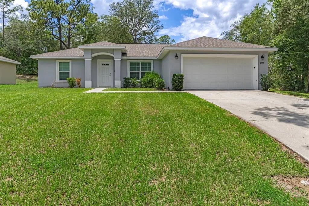 Don’t miss this exceptional value in Citrus Springs, Florida! This nearly new 3-bedroom, 2-bathroom home was built in 2022 and offers modern comfort with an open-concept layout, perfect for both daily living and entertaining. The kitchen features granite countertops, white shaker cabinets, and a full suite of appliances. The split-bedroom design provides privacy, with the primary suite located on one side of the home, along with the laundry room and garage access. Two additional bedrooms and a full bath are positioned on the opposite side. Step outside to a backyard patio ideal for grilling, with vacant lots currently on the side and rear for added privacy. Enjoy close proximity to the popular Rails to Trails bike path and Citrus Springs Community Park with a playground, baseball diamond, and basketball court.