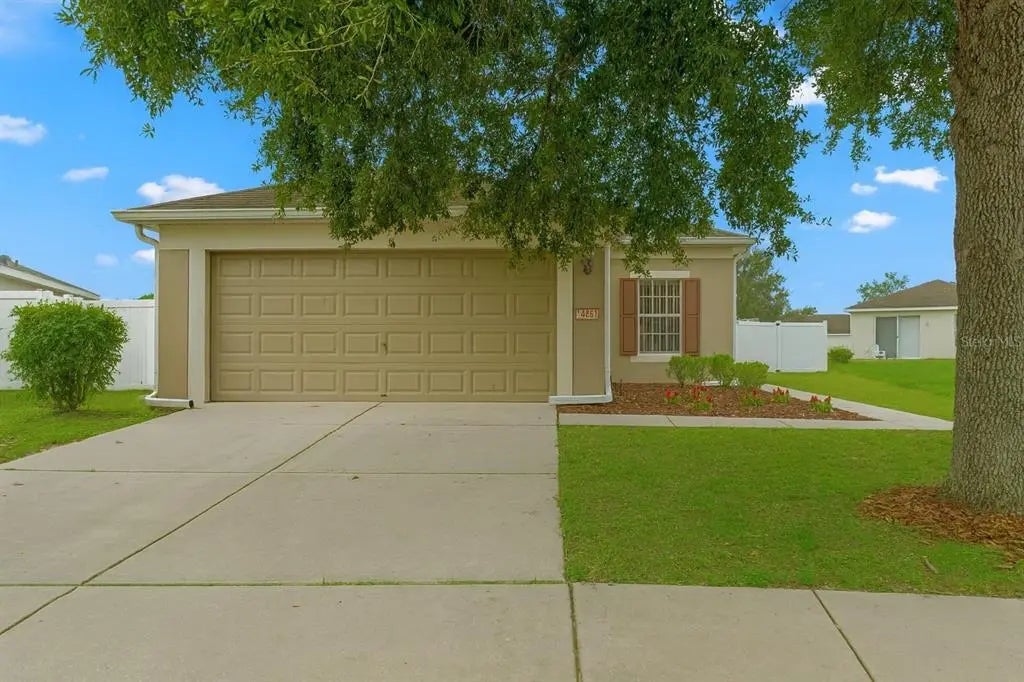 Easy Suncoast Living in the Trillium Community that offers a Beautiful Community Pool & Low HOA fees of 97 per month. Move-In Ready. This 3-bedroom, 2-bath home with a 2-car garage offers 1,260 sq ft split-bedroom floor plan designed for effortless, low-maintenance living. The bright living room flows to a screened lanai and a Large Vinyl Privacy FENCED backyard with a side gate, perfect for outdoor relaxing and entertaining or for your kids and pets to play. The kitchen features wood cabinets, abundant counter space, a breakfast bar and pass-through, pantry storage, and all appliances convey. Durable Vinyl flooring runs through the main living areas, while bedrooms are carpeted for comfort. The primary suite showcases a walk-in closet and an ensuite bath with a step-in shower. Added convenience includes an interior laundry room and full gutters. Location is a standout: Trillium sits beside the Suncoast Parkway for quick access to Tampa, with nearby shopping, dining, and schools. Neighborhood amenities include a resort-style pool, playground, sidewalks, and well-kept common areas. Floor plan is included in the photos, with a few interior photos virtually staged. Three Dimensional Roof 2008. A/C October 2025.
